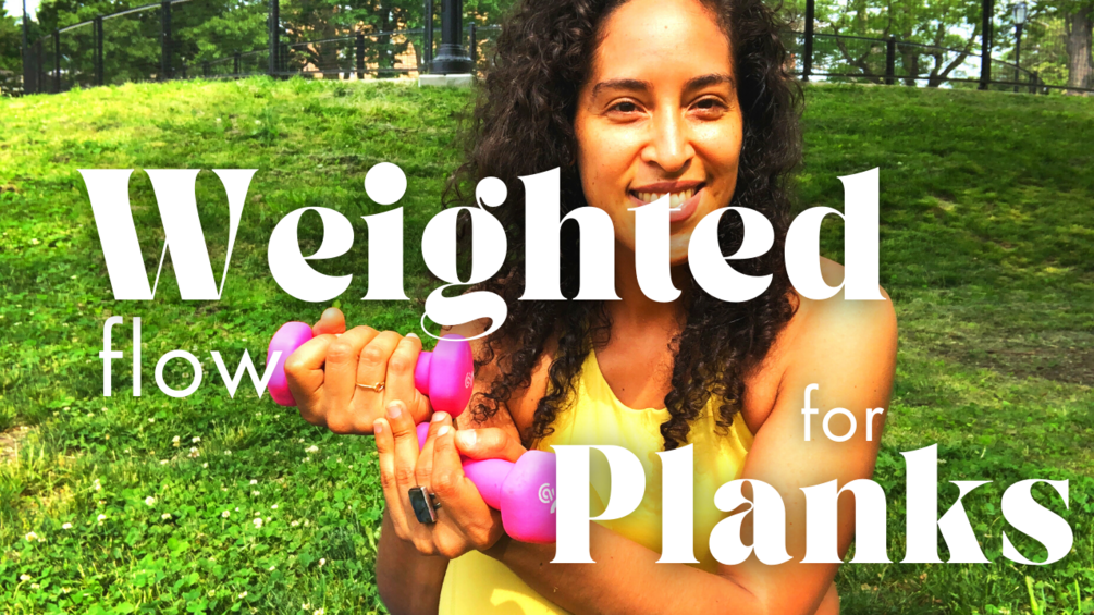 Use 1 to 3 pound hand weights for this full body workout that strengthens the abs and shoulders to improve your planks and side planks.